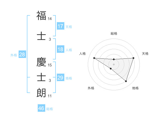 福士 慶士朗さんの天格は17画の4点!