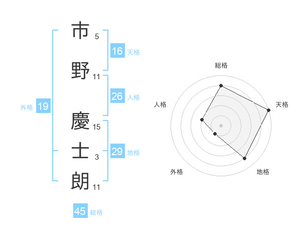市野 慶士朗さんを姓名の画数から五運を鑑定