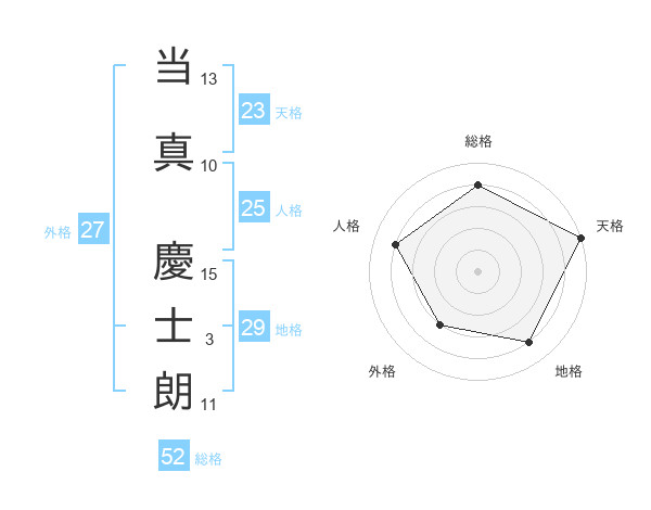 当真 慶士朗さんを姓名の画数から五運を鑑定
