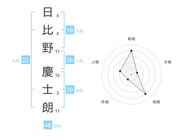 日比野 慶士朗さんを姓名の画数から五運を鑑定