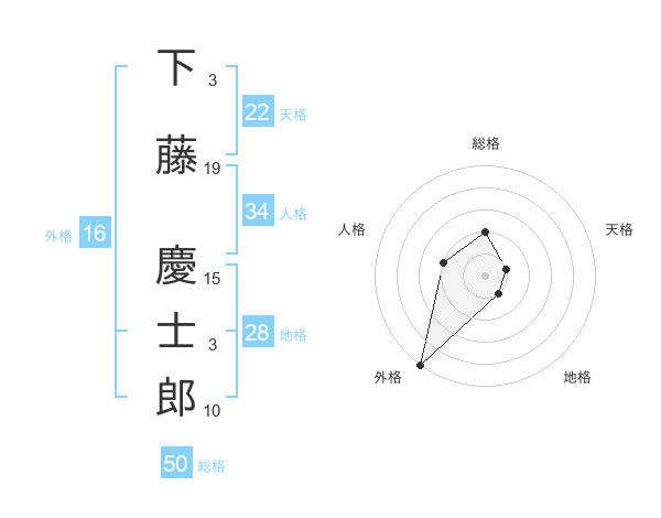 下藤 慶士郎さんの総格は50画の2点!