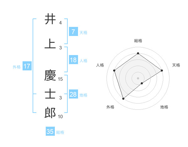 井上 慶士郎さんを姓名の画数から五運を鑑定