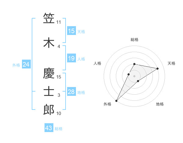 笠木 慶士郎さんを姓名の画数から五運を鑑定