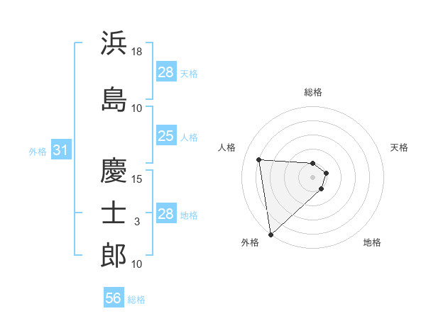 浜島 慶士郎さんを姓名の画数から五運を鑑定