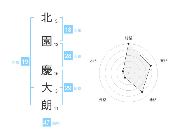 北園 慶大朗さんの総格は47画の5点!