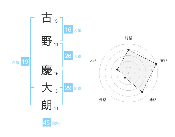 古野 慶大朗さんを姓名の画数から五運を鑑定