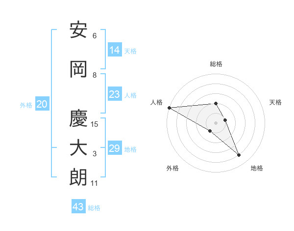 安岡 慶大朗さんの人格は23画の5点!