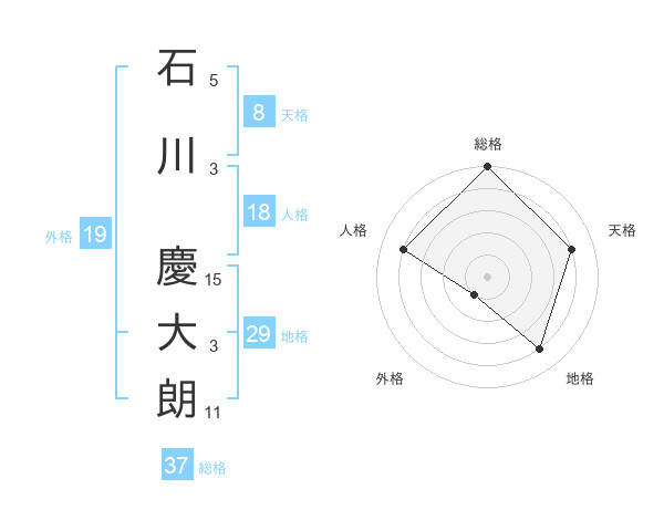 石川 慶大朗さんを姓名の画数から五運を鑑定