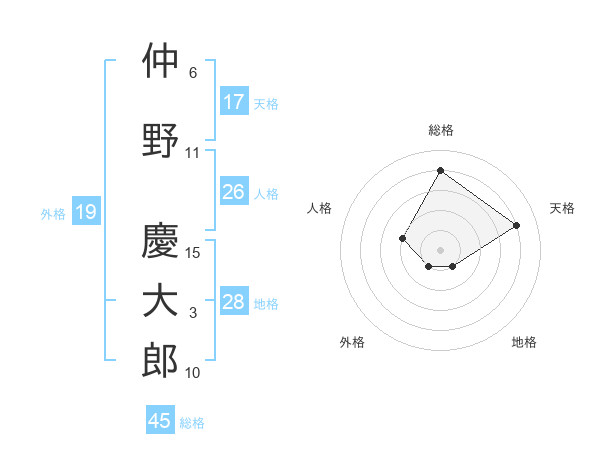 仲野 慶大郎さんを姓名の画数から五運を鑑定