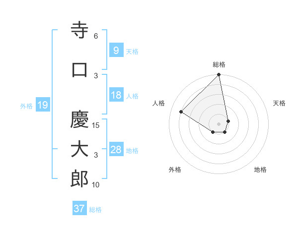 寺口 慶大郎さんの総格は37画の5点!