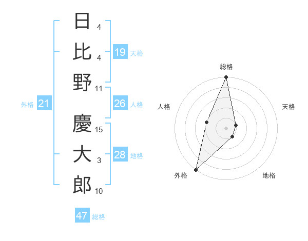 日比野 慶大郎さんを姓名の画数から五運を鑑定