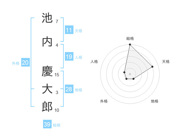 池内 慶大郎さんの総格は39画の5点