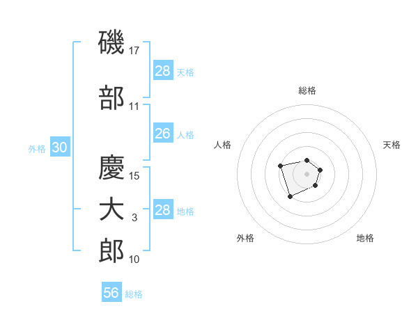 磯部 慶大郎さんの総格は56画の1点