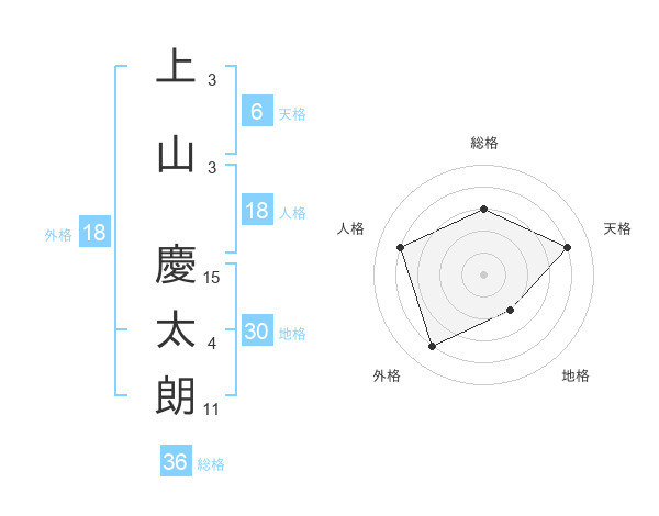 上山 慶太朗さんの総格は36画の3点