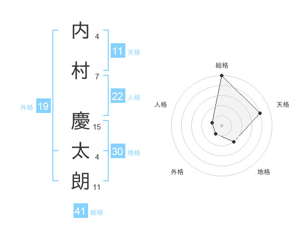 内村 慶太朗さんを姓名の画数から五運を鑑定