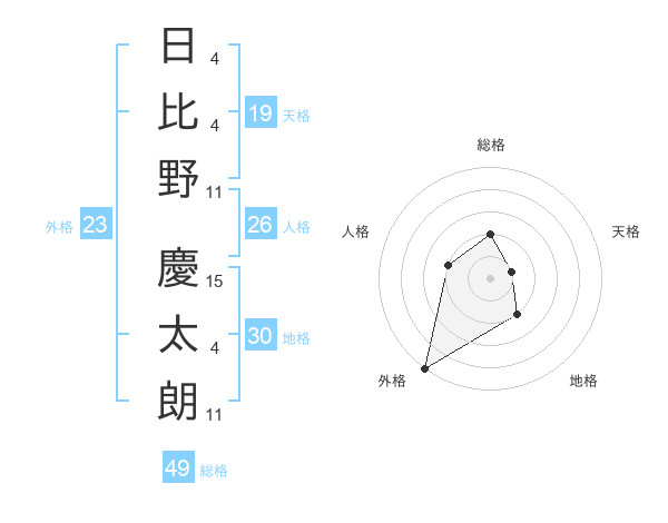 日比野 慶太朗さんを姓名の画数から五運を鑑定