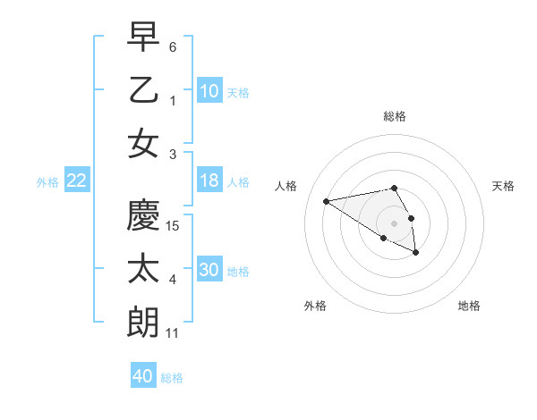 早乙女 慶太朗さんを姓名の画数から五運を鑑定
