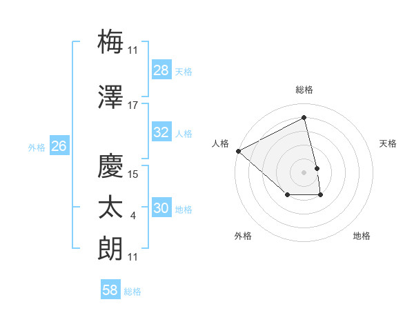 梅澤 慶太朗さんを姓名の画数から五運を鑑定