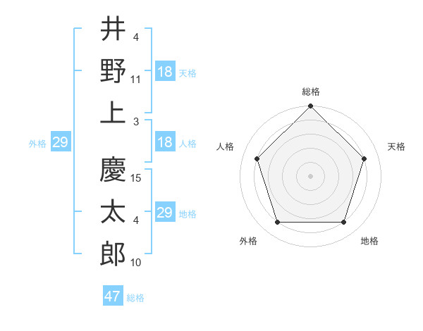 井野上 慶太郎さんを姓名の画数から五運を鑑定