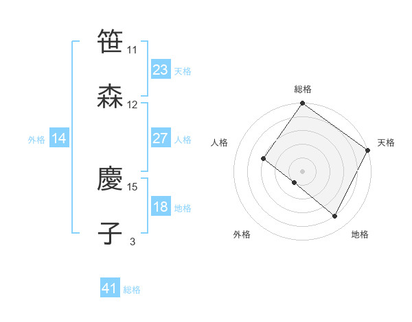 笹森 慶子さんを姓名の画数から五運を鑑定