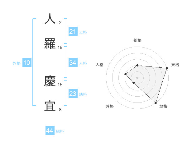 人羅 慶宜さんの天格は21画の5点!