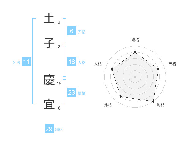 土子 慶宜さんの総格は29画の4点!