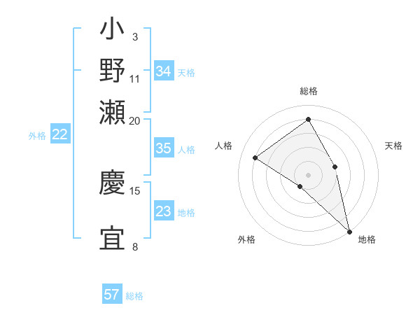 小野瀬 慶宜さんを姓名の画数から五運を鑑定