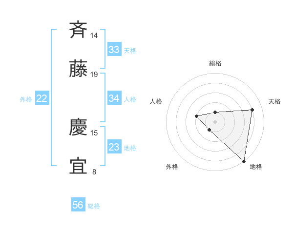 斉藤 慶宜さんの外格は22画の1点!