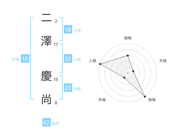 二澤 慶尚さんを姓名の画数から五運を鑑定