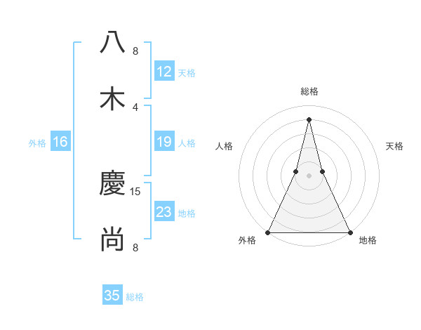 八木 慶尚さんを姓名の画数から五運を鑑定