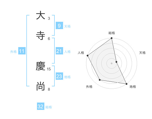 大寺 慶尚さんを姓名の画数から五運を鑑定