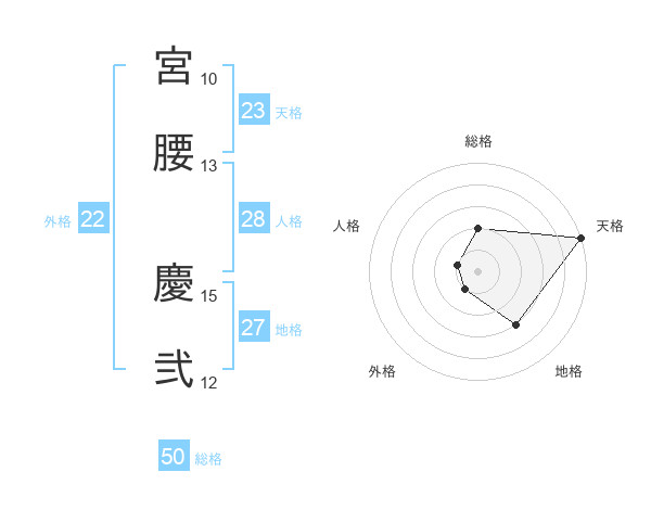 宮腰 慶弐さんの外格は22画の1点!