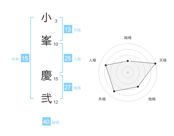 小峯 慶弐さんの天格は13画の5点!