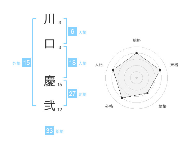 川口 慶弐さんの総格は33画の4点!