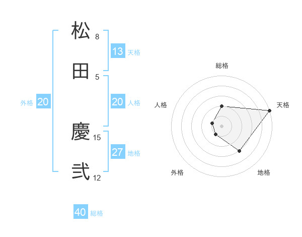 松田 慶弐さんを姓名の画数から五運を鑑定