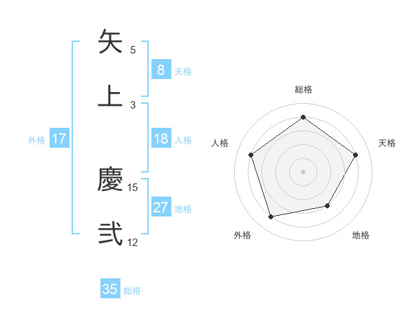 矢上 慶弐さんを姓名の画数から五運を鑑定