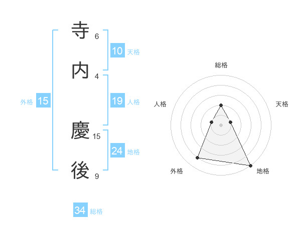 寺内 慶後さんの総格は34画の2点!