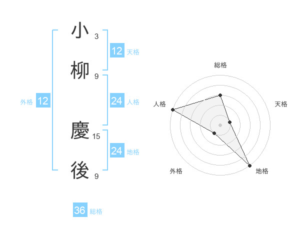 小柳 慶後さんを姓名の画数から五運を鑑定