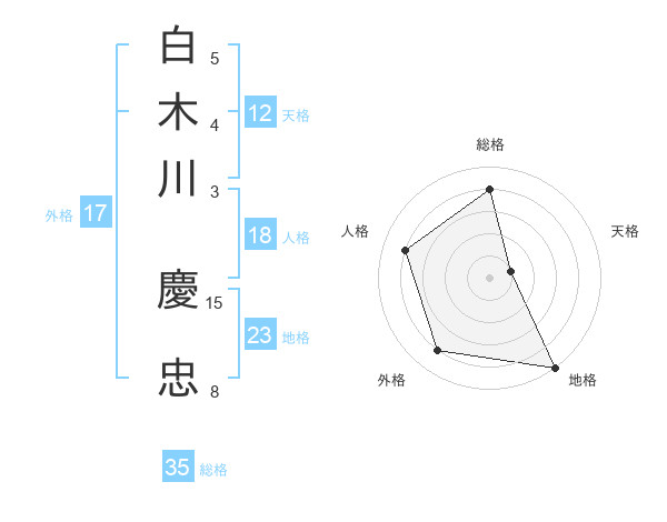 白木川 慶忠さんを姓名の画数から五運を鑑定