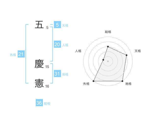 五 慶憲さんの外格は21画の5点!