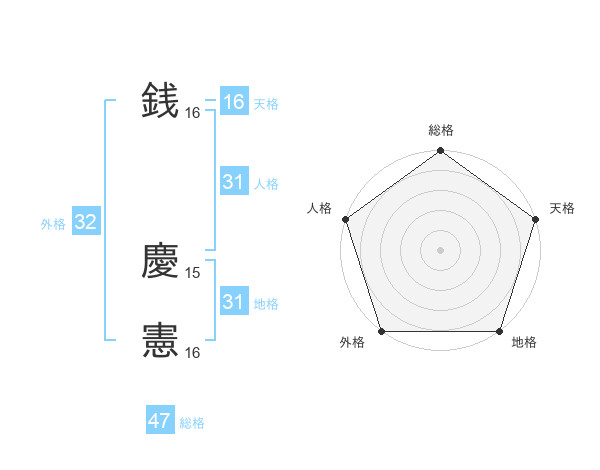 銭 慶憲さんの総格は47画の5点!
