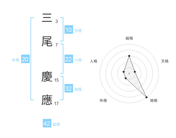 三尾 慶應さんを姓名の画数から五運を鑑定