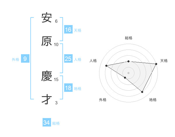 安原 慶才さんの天格は16画の5点!