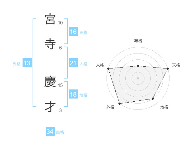 宮寺 慶才さんの総格は34画の2点!
