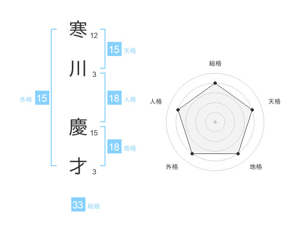 寒川 慶才さんの総格は33画の4点!