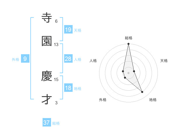 寺園 慶才さんを姓名の画数から五運を鑑定