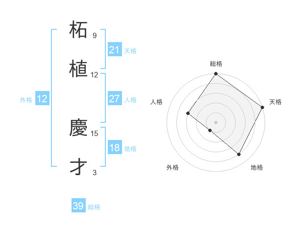 柘植 慶才さんの総格は39画の5点!
