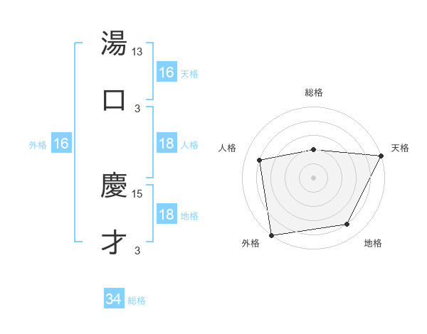 湯口 慶才さんを姓名の画数から五運を鑑定