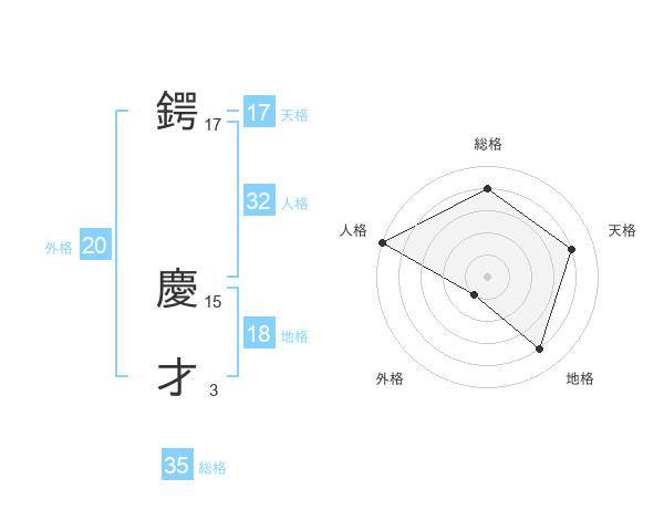 鍔 慶才さんの総格は35画の4点!