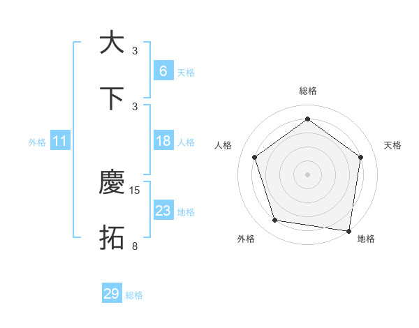 大下 慶拓さんの総格は29画の4点!